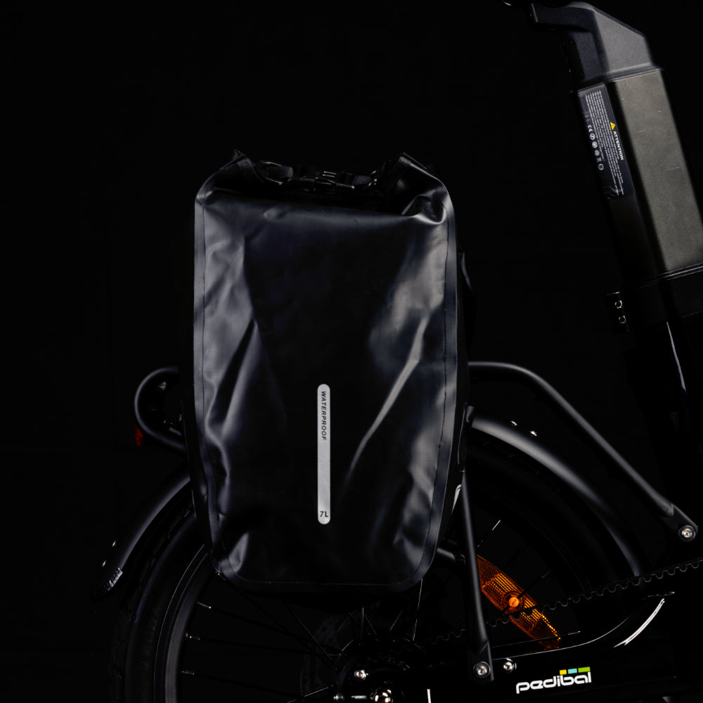 The aluminium rear rack supports loads up to 15kg, perfect for panniers or cargo. Its durable yet lightweight design enhances practicality without compromising the bike’s sleek aesthetics.