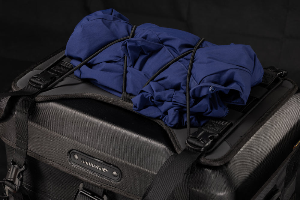 The Tail Bag System collection is built for riders who want maximum versatility from a single luggage system. At its core is a 36 L semi-rigid, fully-waterproof tail bag made from welded 500D fabric and an ABS hard shell lid. Premium hardware such as a Fidlock magnetic buckle and Duraflex UFO quick-release mounts keep it secure while allowing fast detachment. Hidden backpack straps turn it into a practical carry-pack off the bike, while two modular inserts — a padded camera case and a 12-hour cooler — expand its functionality for photography, commuting, camping or day-trips.