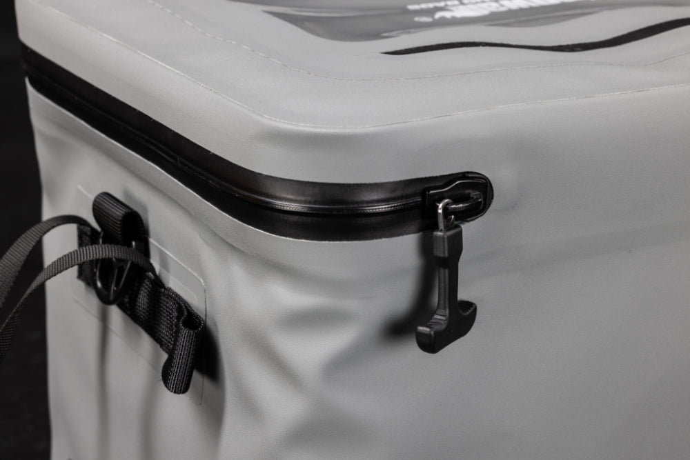 - Welded waterproof construction: Seamless 500D polyester body with ABS hardshell lid.