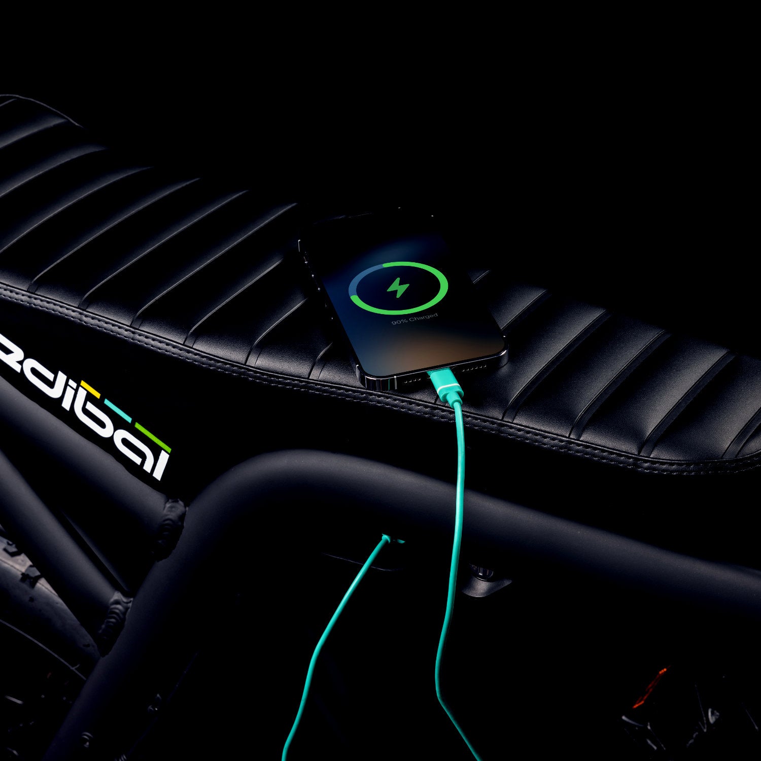 Stay connected on the go with Pedibal Cruiza's versatile USB charging port. Whether it's an iPhone, Android, or any USB-powered gadget, our e-bike ensures your devices remain juiced up, making every ride seamlessly connected.