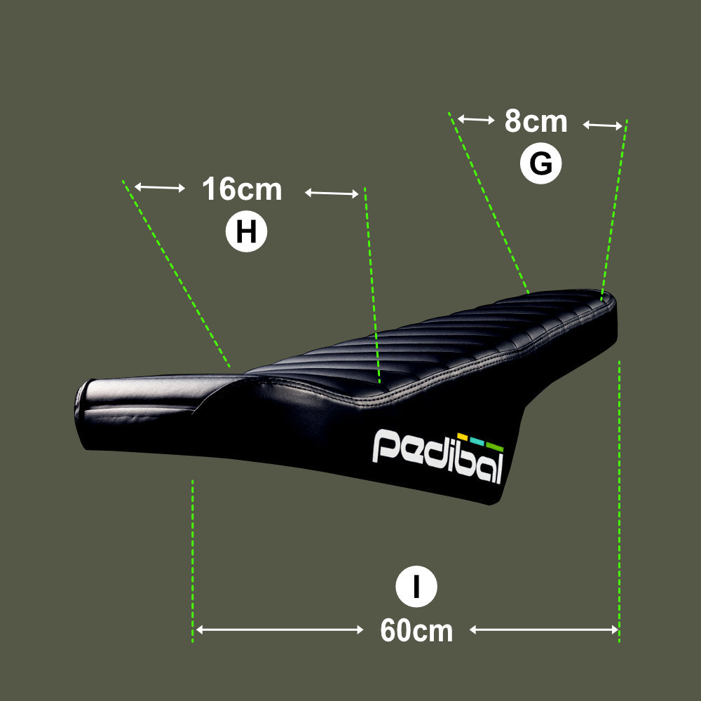 Experience a modern twist on retro chopper-style bikes with the Pedibal e-Cruiza. This e-bike features a long bench seat and high-rise handlebars for a relaxed riding style. Equipped with an 80Nm Bafang rear hub motor and 5 levels of pedal assistance, it offers smooth, powerful hill climbing capabilities. The 4" knobbly tires and front fork crown suspension invite you to explore light off-road terrain.
