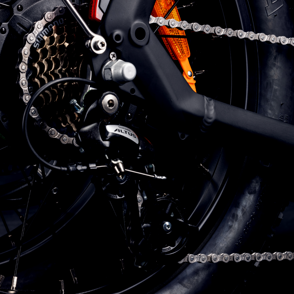Designed for practicality, the Maxima provides an effortless ride. As with fat tyre bikes of this proportion, serious hill climbs may challenge the UK-legal 250w Bafang motor parameters, but they are certainly made easier with the 5 levels of pedal assist and 7-speed gear combination. Power and range come from the larger 21Ah LG battery pack, and the DVSA-approved throttle is a great addition for those stop/start journeys.