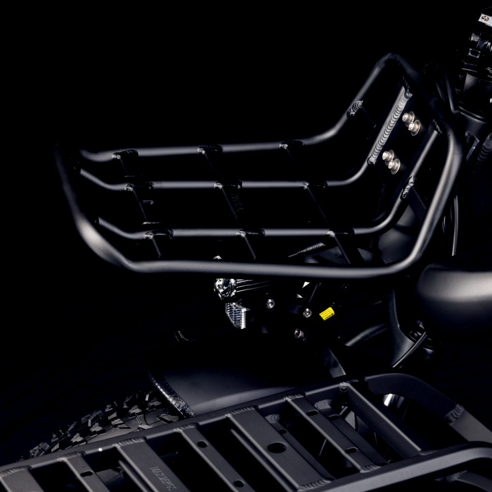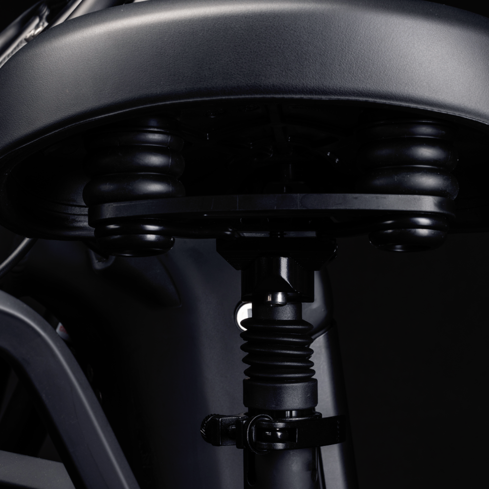 Weighing in at 37kg, this heavyweight e-bike packs a punch, with its robust construction built to last. Fully equipped and loaded, this workhorse of the Pedibal range incorporates the Bafang rear hub motor, 5 levels of pedal assistance, hydraulic forks, and integrated seatpost suspension. Coupled with 4” knobbly tyres, it offers smooth and confident ride capabilities, collectively inviting you to explore light off-road terrain and absorb potholes with ease. Not to mention the abundance of load space provided by the front and rear dual panniers, which come as standard.